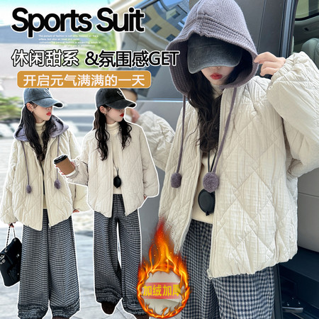一*叶收藏“707款一体绒连帽格子裤套装”
